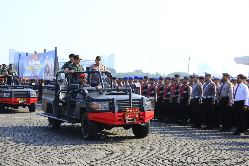 “Untuk total personel yang melaksanakan kegiatan pengamanan kurang lebih 15 ribu. Hari ini tergabung dalam apel gelar pasukan ini kurang lebih 2 ribu karena yang lain sudah kita tugaskan untuk melaksanakan di titik masing-masing,” terangnya.