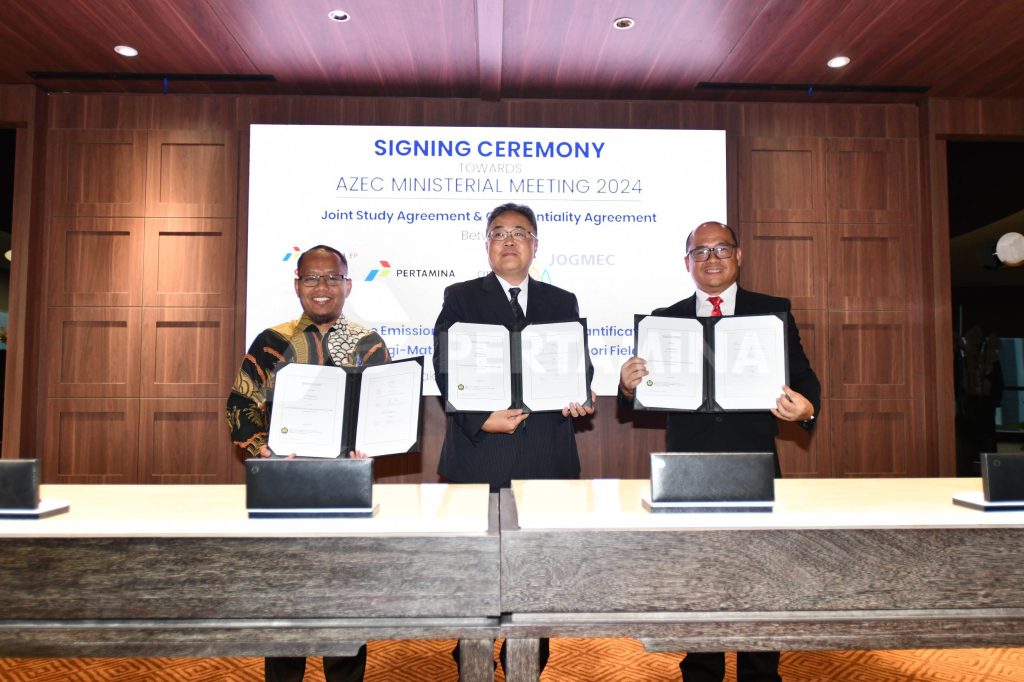 JSA tersebut ditandatangani pada acara AZEC Ministerial Meeting 2024 di Jakarta, oleh Direktur Strategi, Portofolio, dan Pengembangan Usaha Pertamina Salyadi Saputra, Direktur Region 4 Pertamina EP Muhamad Arifin, serta General Manager JOB Pertamina Medco E&P Tomori Sulawesi Andry. Selain itu, EVP, Member of the Board of JOGMEC (Energy Business) of JOGMEC, Hiroyuki Mori.