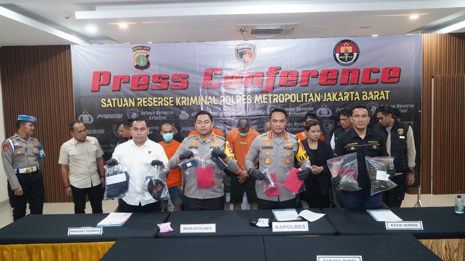 Kapolres Metro Jakarta Barat, Kombes Pol M. Syahduddi didampingi Waka Polres Metro Jakarta Barat, AKBP Teuku Arsya Khadafi dan Wakasat Reskrim Kompol Muhammad Kukuh Islami, dalam konferensi pers yang digelar di Mapolres, memaparkan kronologi dan hasil penyelidikan yang dilakukan oleh tim gabungan dari Satreskrim Polres Metro Jakarta Barat dan Unit Reskrim Polsek Kebon Jeruk.