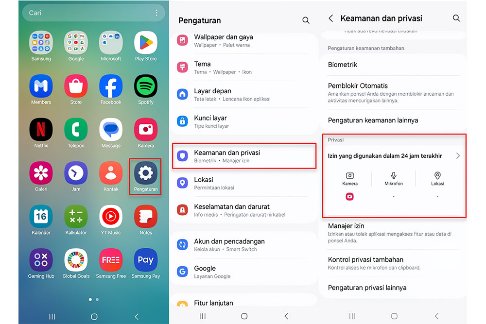 Untuk mengetahui aplikasi mana yang sedang menggunakan kamera dan mikrofon, kamu bisa mengecek nya dengan cara: