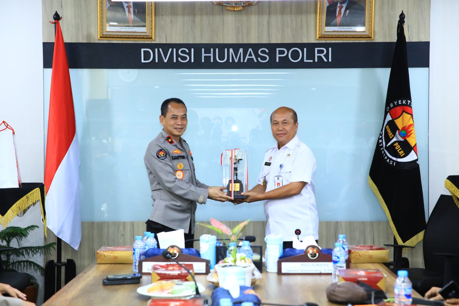 Kadiv Humas Polri Irjen Pol Sandi Nugroho yang diwakili Kepala Biro PID Divhumas Polri Brigjen Pol Tjahyono Saputro menerima langsung rombongan Kemenkumham yang dipimpin oleh Kepala Biro Humas, Hukum, dan Kerja Sama (Hukerma) Hantor Situmorang.