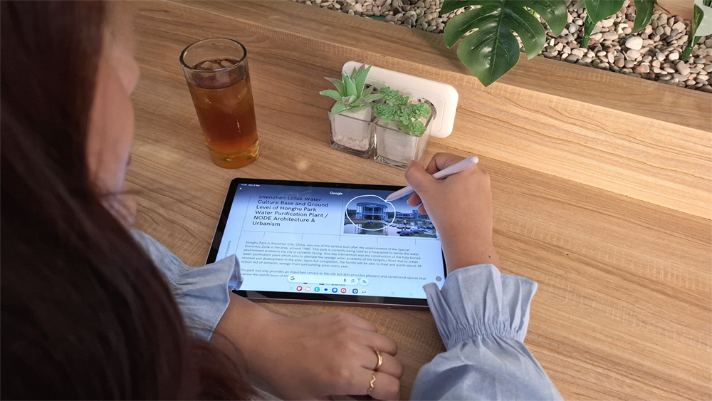 Dengan layar dengan luas hingga 12.4 inci yang jernih, membaca materi perkuliahan yang full text maupun bergambar akan terlihat lebih hidup, didukung transisinya yang smooth karena dilengkapi dengan adaptive refresh rate hingga 90Hz. Di sela-sela perkuliahan, saat kamu dan teman-teman sedang kerja kelompok untuk mengumpulkan materi paper sebagai tugas pertama di semester yang baru, tak jarang kamu akan mendapatkan bahan dari jurnal atau website berbahasa asing. Seringkali, teks asing tersebut tidak bisa disorot lalu di-copy paste ke aplikasi penerjemah. Kamu bisa secara mudah menggunakan Circle to Search untuk menerjemahkan teks asing tersebut tanpa harus membuka aplikasi lainnya.