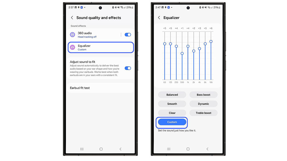 Nikmati musik hingga personalisasi audio sesuai selera kamu dengan adaptive EQ Galaxy Buds3 Pro