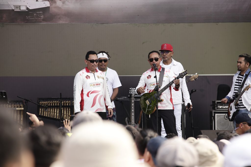 Keduanya naik ke panggung utama dan menyanyikan lima lagu di hadapan masyarakat. Di atas panggung, Panglima TNI bermain gitar dan Kapolri menjadi vokalisnya. ‘Ku Tak Bisa’ dari Slank pun menjadi lagu pembuka.