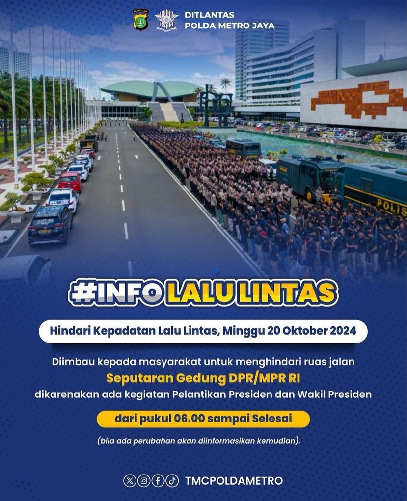 Informasi Pengalihan Arus Lalu Lintas Saat Pelantikan Presiden dan Wakil Presiden di Gedung DPR RI