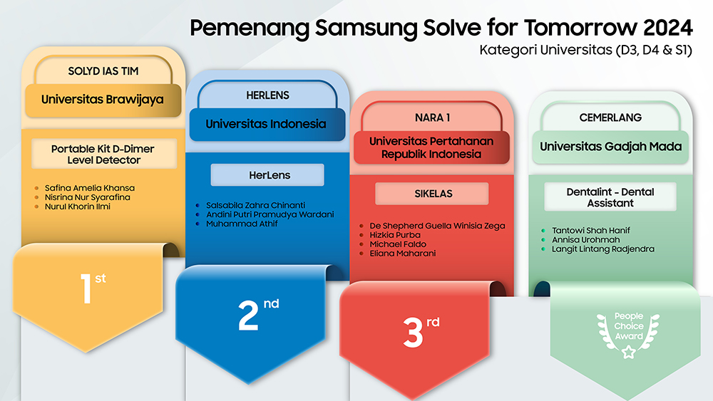 Daftar nama tim pemenang Samsung Solve for Tomorrow 2024 kategori Universitas (D3, D4, & S1)