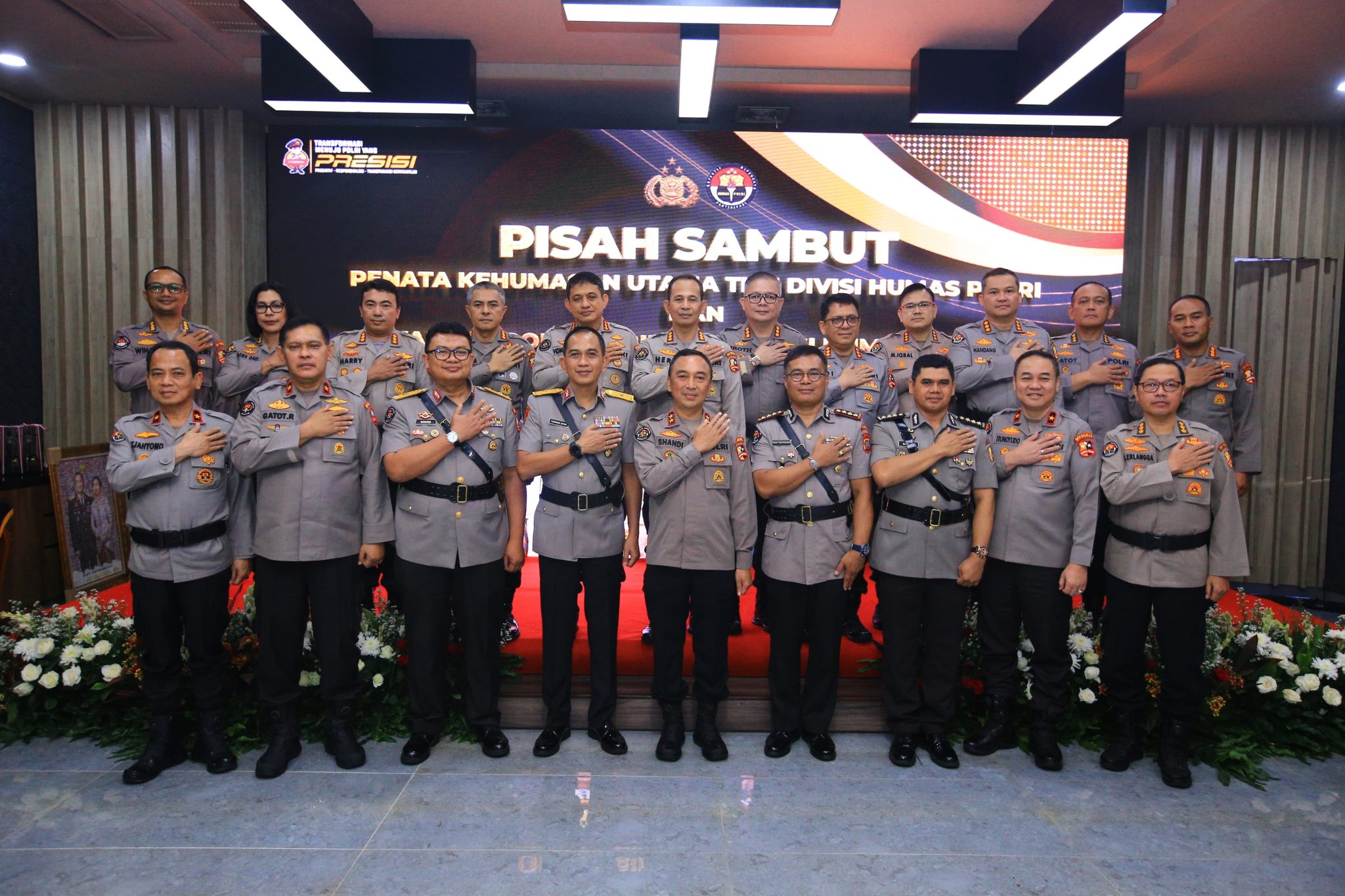 Jakarta. Kadiv Humas Polri Irjen. Pol. Sandi Nugroho memimpin upacara serah terima jabatan Penata Kehumasan Utama Tk II. Jabatan itu sebelumnya diduduki Brigjen. Pol. I Komang Sandi Arsana.