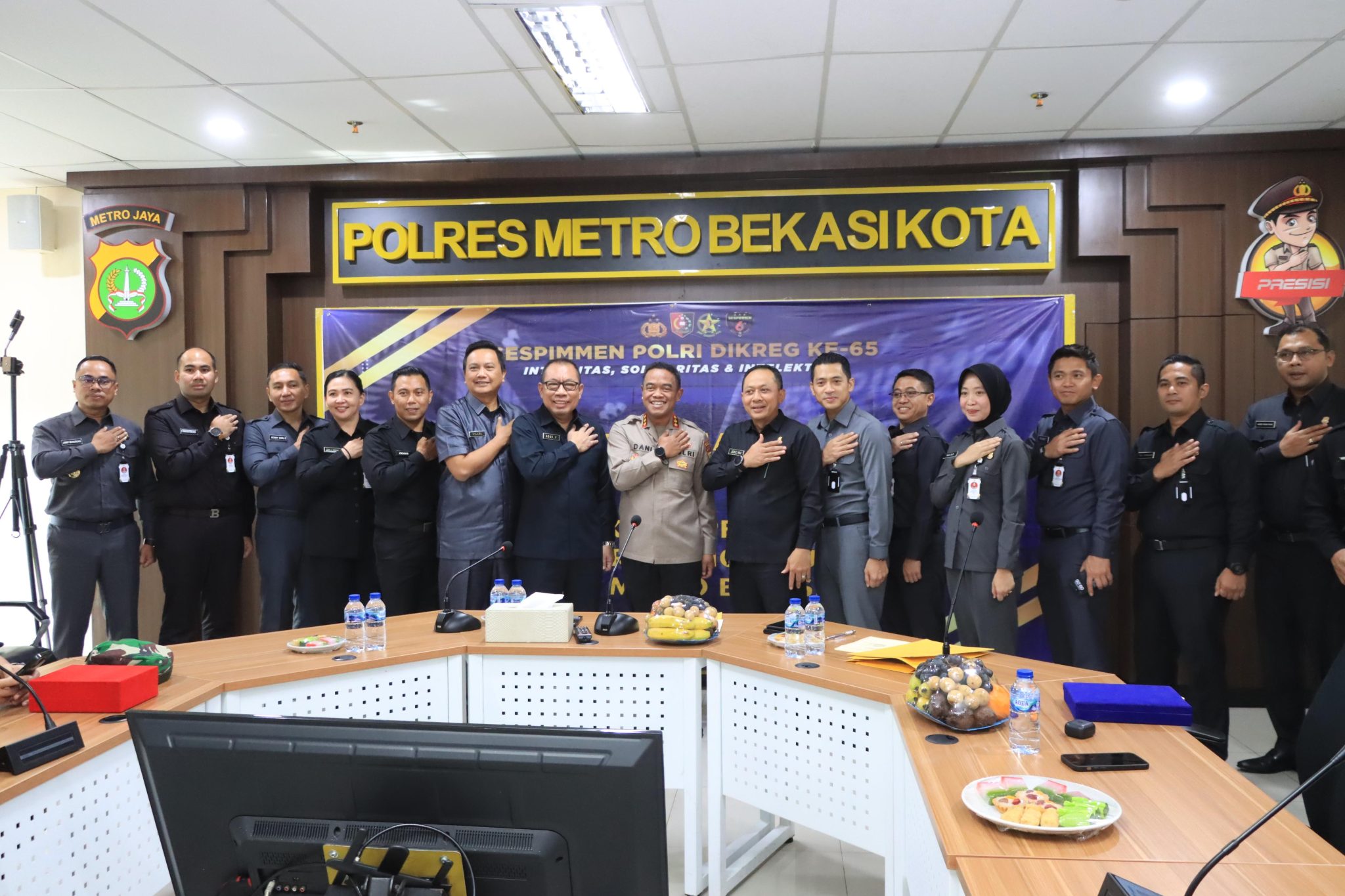 Kota Bekasi – Kapolres Metro Bekasi Kota, Kombes Pol. Dani Hamdani, S.I.K., M.PM., menyambut dengan antusias kunjungan peserta didik Sekolah Staf dan Pimpinan Menengah (Sespimmen) Polri Angkatan 65 dalam rangka pembukaan Management Training Course (MTC) Level III. Kegiatan ini berlangsung di Ruang OR. Lt 3 Polres Metro Bekasi Kota, yang bertujuan untuk meningkatkan kompetensi manajerial dan kepemimpinan perwira Polri.(20/2/25)