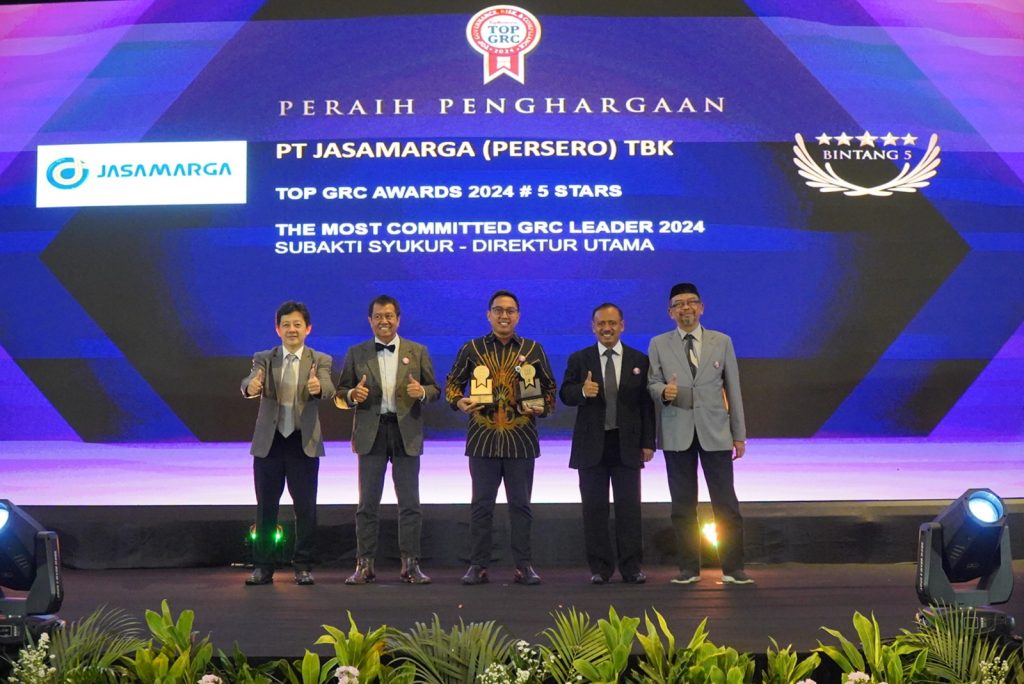 Jakarta (12/09) – PT Jasa Marga (Persero) Tbk kembali mengukir prestasi dengan meraih dua penghargaan bergengsi dalam ajang TOP GRC Awards 2024. Jasa Marga mendapatkan penghargaan TOP GRC Awards 2024 #5 Star untuk kategori Perusahaan dan penghargaan The Most Committed GRC Leader 2024 yang diberikan kepada Direktur Utama Jasa Marga, Subakti Syukur. Penghargaan ini menegaskan komitmen Jasa Marga dalam mengintegrasikan prinsip-prinsip tata kelola, manajemen risiko, dan kepatuhan dalam setiap lini bisnisnya, untuk mewujudkan perusahaan yang berkelanjutan dan siap menghadapi tantangan bisnis global.