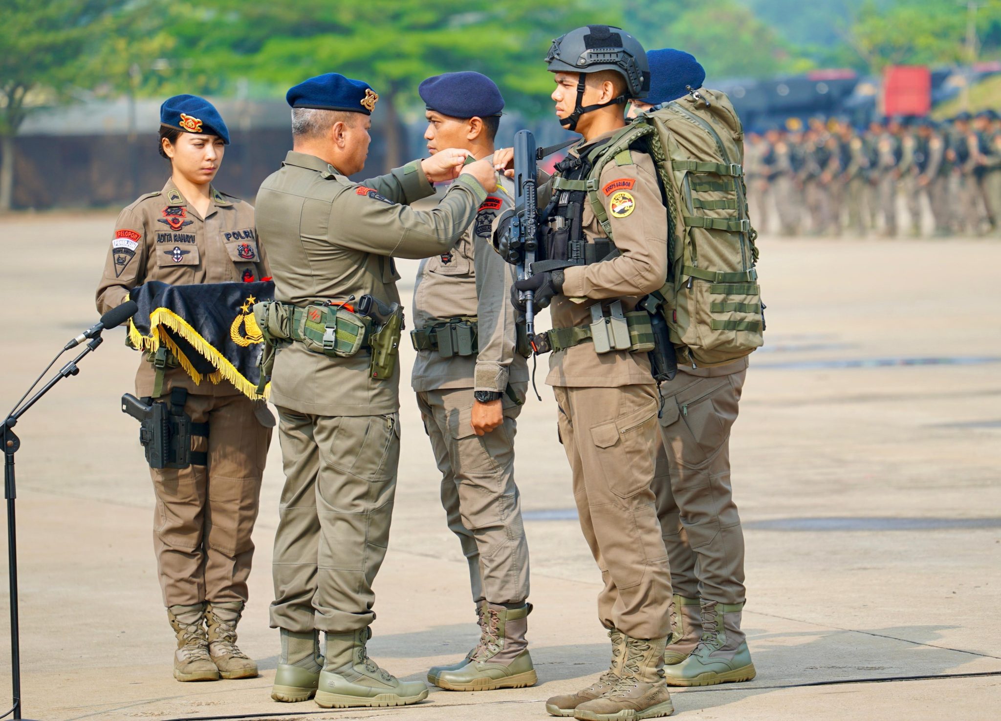 Upacara tersebut dipimpin oleh Karorenminops Korbrimob Polri Brigjen Pol. Rudy Harianto dan dihadiri oleh Konsultan SRM PT. Freeport Indonesia Brigjen Pol. (Purn) Bonifasius Tampoi, Para Pejabat Utama Korbrimob Polri serta Para Danmen/Dansat Jajaran Korbrimob Polri di Lapangan Nagara Jannotama, Satlat Brimob Korbrimob Polri Cikeas, Bogor.