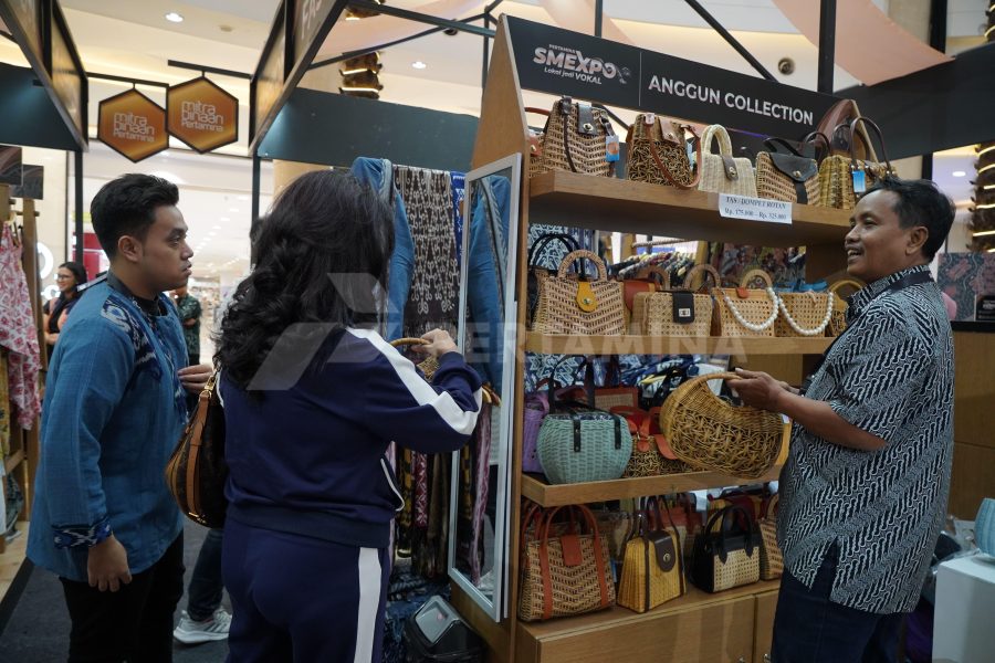 Pengunjung Pertamina SMEXPO 2024 menilik berbagai produk kreatif berkualitas dari UMKM binaan. Ajang pameran UMKM ini menghadirkan ratusan produk kerajinan, fashion, makanan dan minuman, hingga beragam jenis kopi dan teh citarasa nusantara.