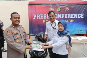 Kota Bekasi – Polsek Jatiasih Polres Metro Bekasi Kota mengembalikan motor-motor masyarakat yang telah dicuri oleh pelaku pencurian lalu berhasil diungkap oleh Polsek Jatiasih saat konferensi pers di Mapolsek Jatiasih.