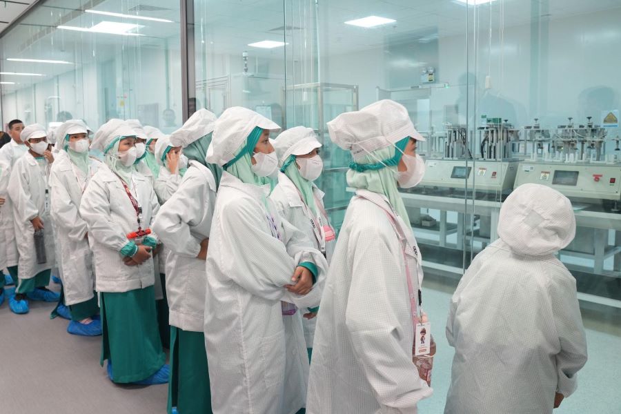 Rombongan kemudian diajak menyusuri area produksi, wajah-wajah penuh rasa ingin tahu terlihat saat mereka memasuki area produksi. Di balik kaca besar, Aluna tak bisa menahan rasa kagumnya saat melihat begitu banyak pekerja dan deretan mesin-mesin besar yang beroperasi dengan presisi tinggi. “Ternyata bikin HP itu pakai mesin-mesin keren banget!” seru Aluna sambil mencatat proses yang ia lihat.