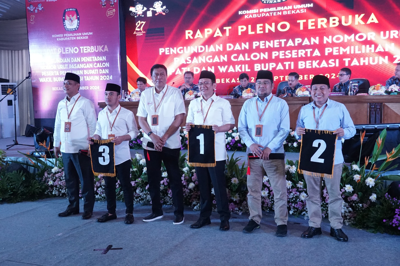 Pengundian nomor urut pasangan calon menjadi salah satu momen yang paling ditunggu oleh masyarakat Kabupaten Bekasi. Dengan ditetapkannya nomor urut, para calon Bupati dan Wakil Bupati resmi memulai tahapan kampanye untuk memperebutkan suara masyarakat pada Pilkada 2024. Acara pengundian berjalan dengan lancar, dan setiap paslon dengan antusias menerima nomor urut mereka, disambut sorak-sorai dari para pendukung.