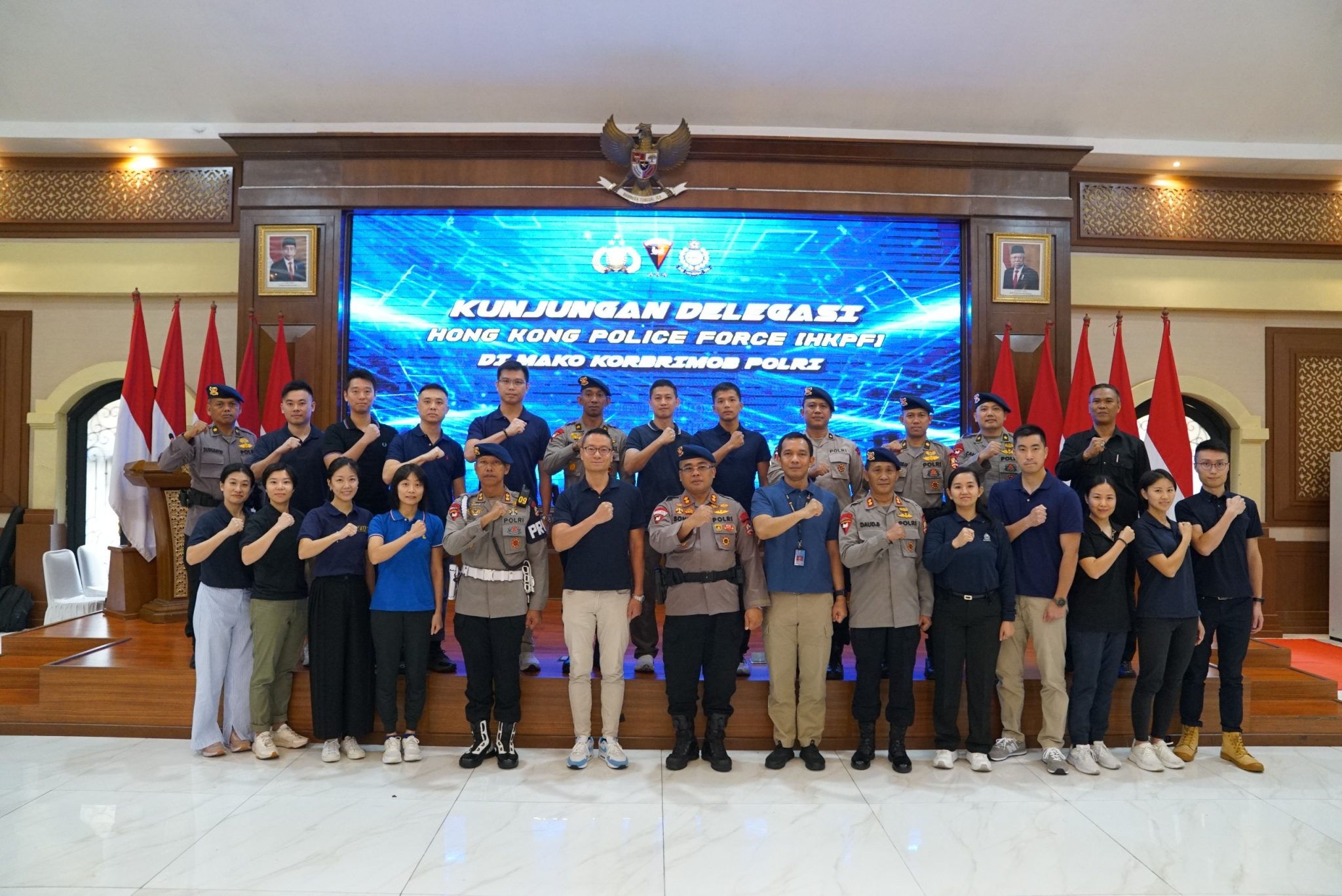 Korbrimob Polri menerima Kunjungan Kerja Kepolisian Hong Kong (Hong Kong Police Force) di Gedung Gineung Pratidina Mako Korbrimob Polri Kelapadua, Cimanggis, Kota Depok. Rabu (25/9/2024).