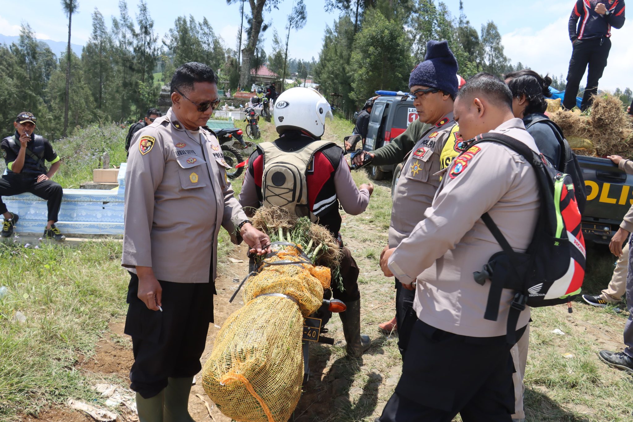 Pencarian tanaman ganja melibatkan warga desa setempat, TNBTS, dan TNI, dipimpin langsung Wakapolres Lumajang Kompol I Komang Yuwandi Sastra, S.H., S.I.K., M.Si. Dalam operasi kali ini, petugas berhasil mengamankan 1.558 batang tanaman ganja dari lima titik berbeda.
