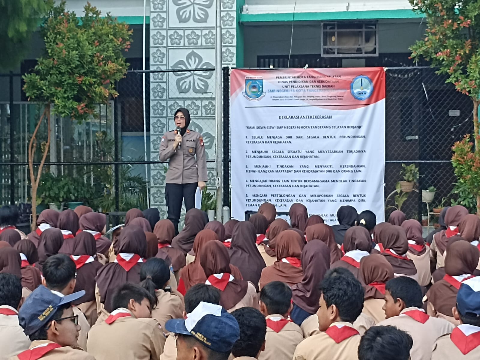 Tangerang Selatan — Pada hari Rabu, 21 Agustus 2024, Polres Tangerang Selatan melalui Polsek Serpong mengadakan kegiatan penyuluhan penting di SMP Negeri 16 Tangsel, yang terletak di Kelurahan Paku Jaya, Kecamatan Serpong Utara, Kota Tangerang Selatan. Kegiatan ini dilaksanakan pada pukul 07.00 pagi dan dihadiri oleh 200 siswa dari sekolah tersebut. Acara ini bertujuan untuk memberikan pemahaman yang lebih baik kepada para siswa mengenai berbagai isu penting seperti kenakalan remaja, bullying, tawuran, dan penyalahgunaan narkoba.