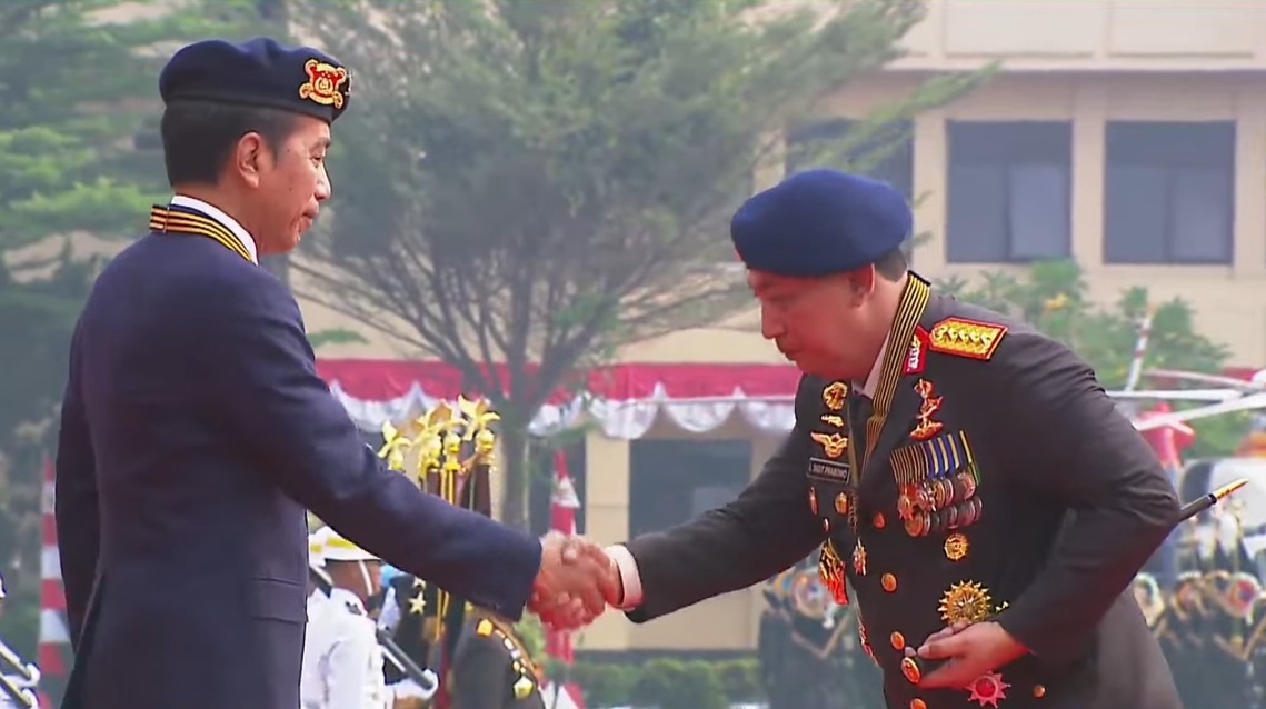 Depok – Presiden Joko Widodo (Jokowi) mendapat penganugerahan Medali Kehormatan Loka Praja Samrakshana dari Polri. Kapolri Jenderal Listyo Sigit Prabowo menyerahkan medali kehormatan langsung ke Presiden.