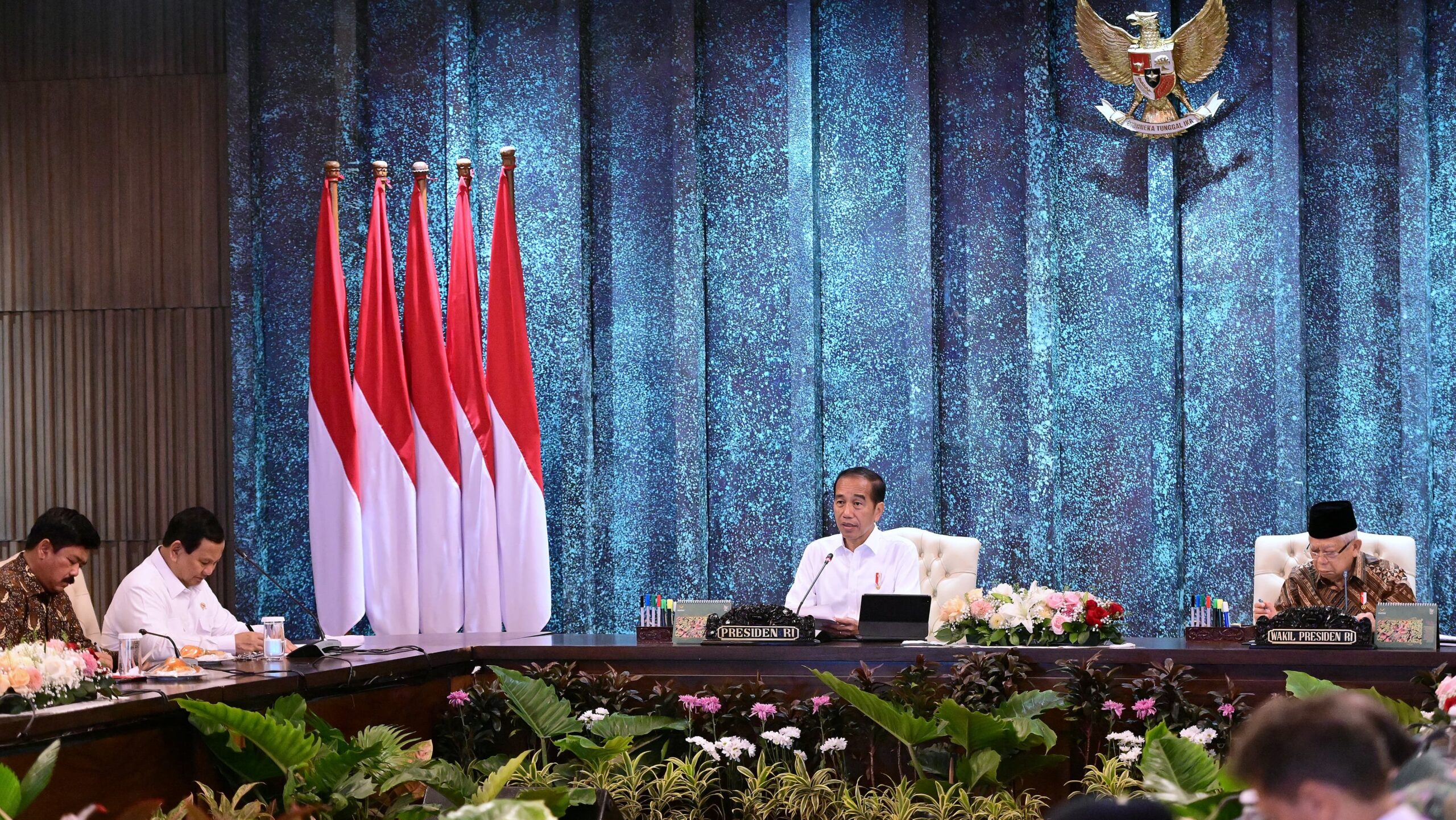 Presiden Joko Widodo memimpin Sidang Kabinet Paripurna perdana di lokasi yang dirancang sebagai pusat pemerintahan baru Indonesia, yaitu Ibu Kota Nusantara (IKN), pada Senin, 12 Agustus 2024. Mengawali sidang yang digelar di Istana Garuda tersebut, Presiden Jokowi menyampaikan rasa syukurnya kepada Allah SWT atas kesempatan istimewa ini.