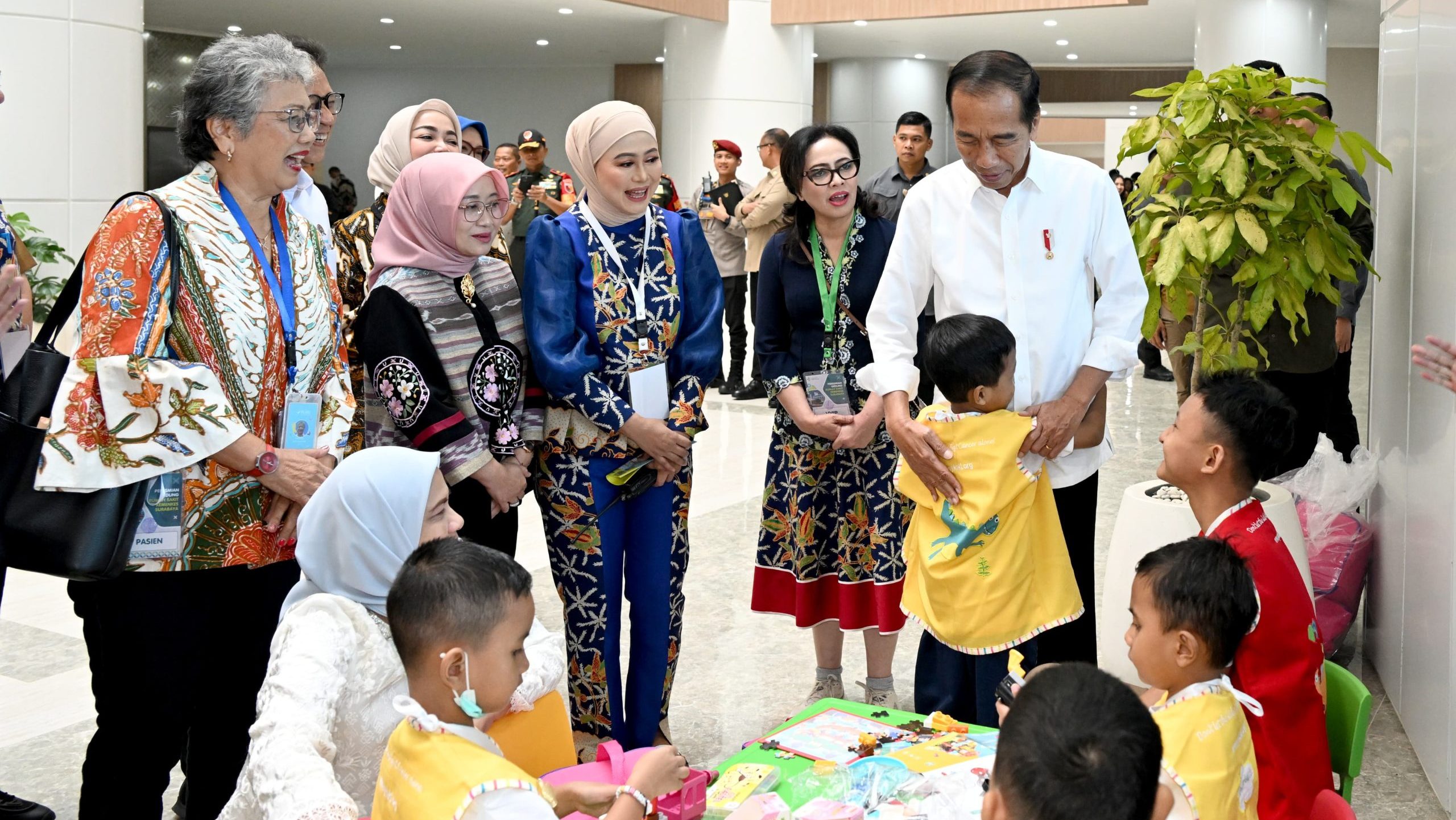 Presiden Joko Widodo didampingi Ibu Iriana Joko Widodo meresmikan Rumah Sakit Kementerian Kesehatan (RS Kemenkes) di Kota Surabaya, Provinsi Jawa Timur, pada Jumat, 6 September 2024. Dalam sambutannya, Presiden Jokowi menekankan pentingnya peningkatan kualitas layanan kesehatan untuk mengurangi jumlah pasien yang berobat ke luar negeri.