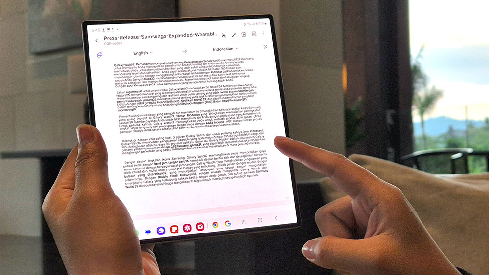 Tips lain dari Andira yang membuatnya bisa produktif banget menggunakan Galaxy Z Fold6 karena dia bisa menerjemahkan dokumen dengan bahasa asing dalam hitungan detik. Kesulitan tersebut ditemukan Andira karena selama ini dirinya kerap berkolaborasi dengan para foreign investors untuk mendukung aplikasi kesehatan yang sedang dikembangkan.