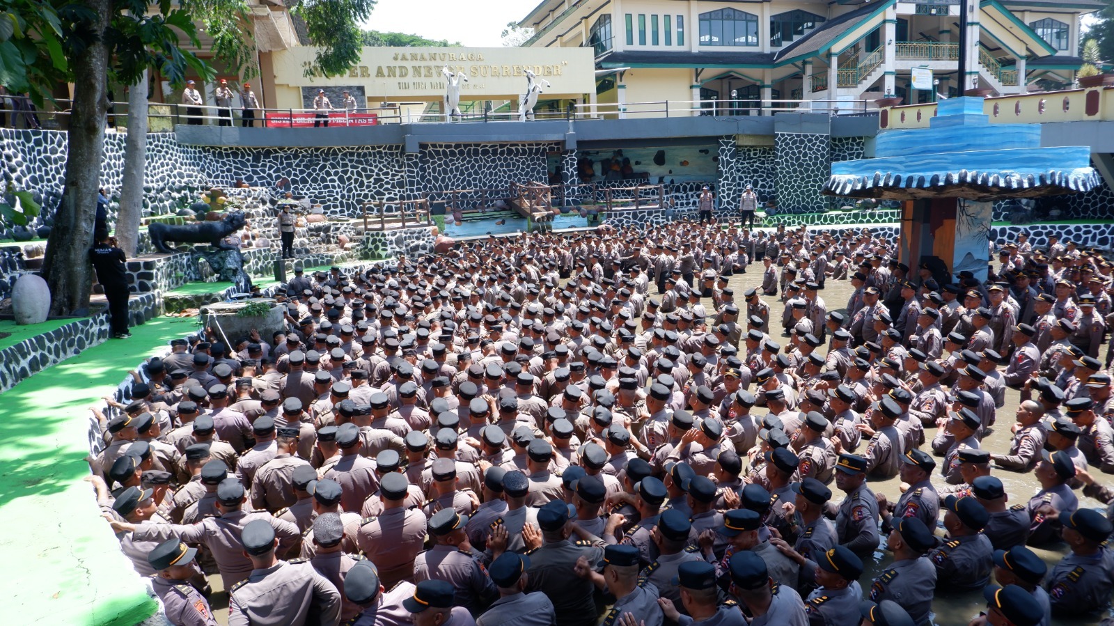 Kasetukpa Lemdiklat Polri Brigjen Pol Dirin bersama pejabat utama Setukpa Polri dan para pengasuh siswa didik, dibawah terik panasnya matahari. Mereka melatih fisik dan mental, kemudian dilajutkan berendam di kolam rajawali sedalam 50 centi meter. Namun, terkecuali siswa dalam keadaan jasmaninya kurang baik mereka diberikan dispensasi oleh para pengasuh.