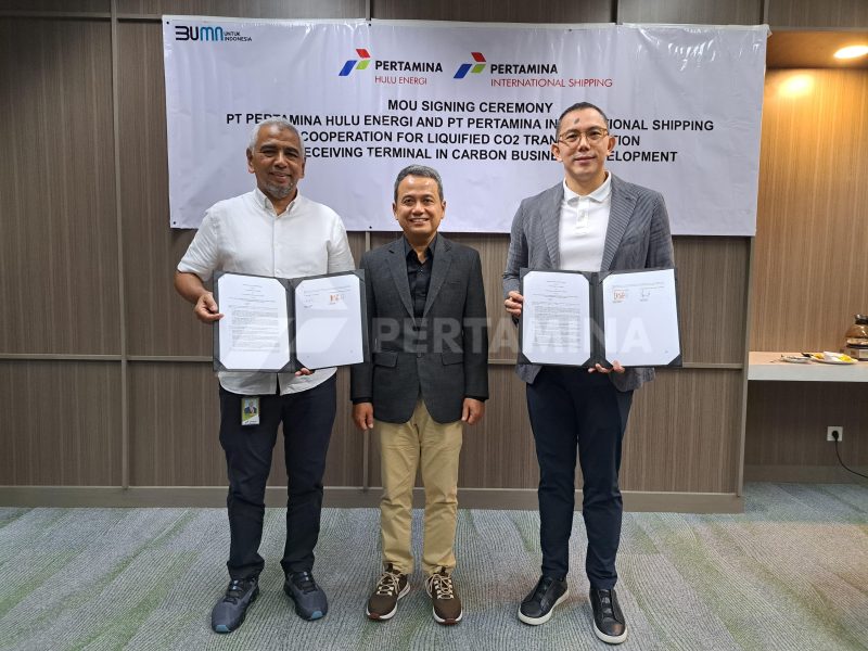 Penandatanganan MoU ini dilakukan sebagai simbolis kesepakatan awal kerja sama penyediaan transportasi liquified CO2 dan receiving terminal dalam pengembangan bisnis karbon antara PT Pertamina Hulu Energi dengan PT Pertamina International Shipping.