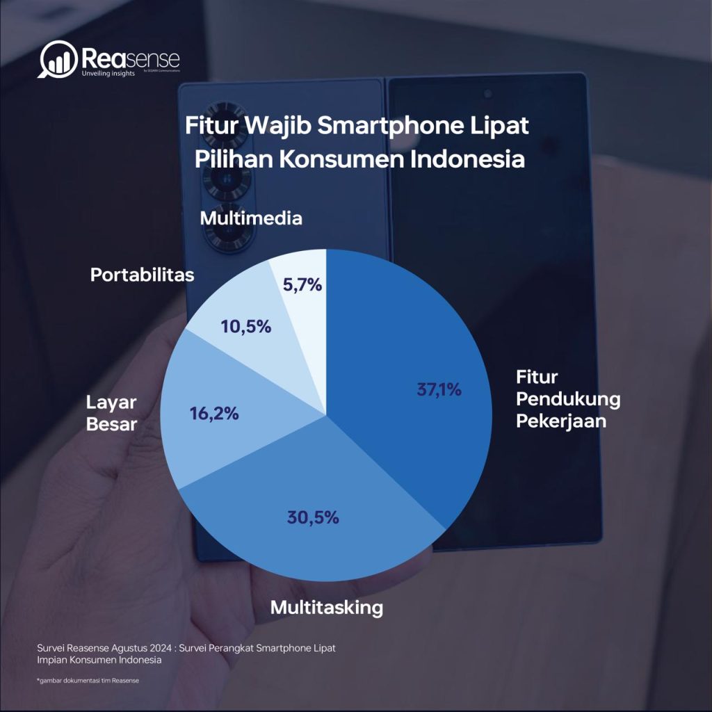 Lebih lanjut, survei juga mengidentifikasi fitur-fitur yang paling diinginkan konsumen pada smartphone lipat. Hasilnya menunjukkan bahwa fitur pendukung pekerjaan seperti multi-tasking dan layar lebih besar menjadi prioritas utama. Sebanyak 37,1% responden menginginkan fitur pendukung pekerjaan, 30,5% menginginkan fitur multi-tasking, dan 16,2% menginginkan layar yang lebih besar.