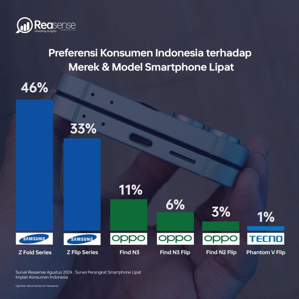 Hasil survei menunjukkan bahwa brand Samsung paling sering diingat oleh konsumen ketika menyebutkan merek smartphone lipat. Jenama asal Korea Selatan ini terwakili oleh Samsung Z Fold Series meraih 46% dan Samsung Z Flip Series sebanyak 33%. OPPO Find N3 menyusul di posisi ketiga dengan persentase 11%. Hasil survei ini menunjukkan bahwa pasar smartphone lipat di Indonesia masih sangat potensial.