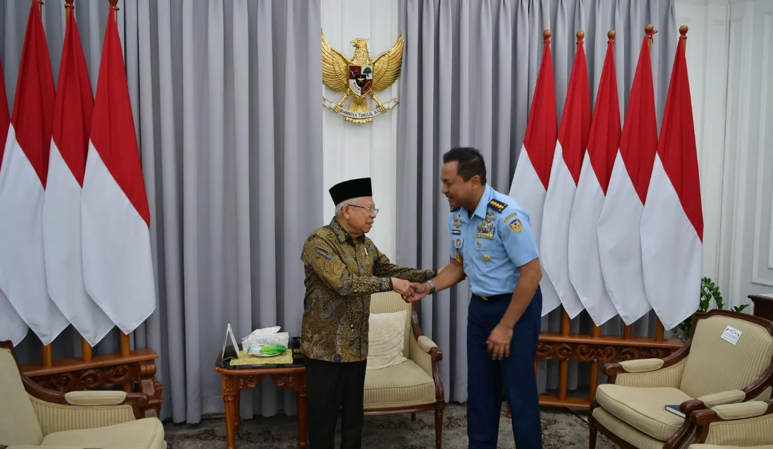 “Hari ini saya selaku Kepala Staf Angkatan Udara diterima oleh Bapak Wakil Presiden dan tadi pembicaraan seputar angkatan udara,” ungkapnya.