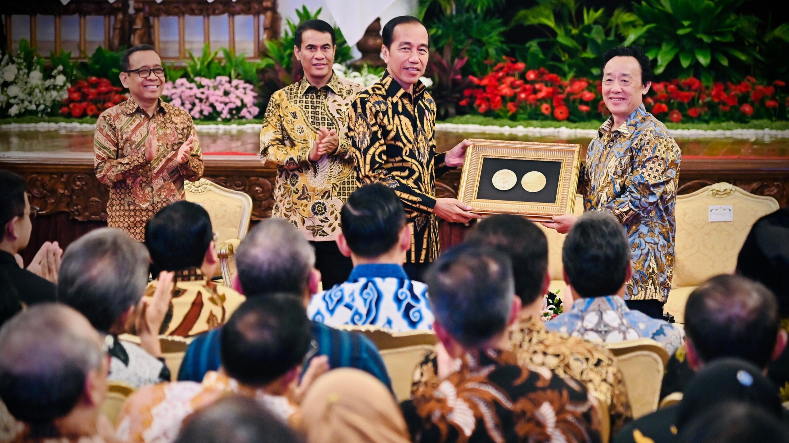 Presiden Joko Widodo menerima penghargaan Agricola Medal dari The Food and Agriculture Organization of the United Nations (FAO). Penghargaan tersebut diserahkan langsung oleh Director General FAO, Dr. Qu Dongyu di Istana Negara Jakarta, pada Jumat, 30 Agustus 2024.