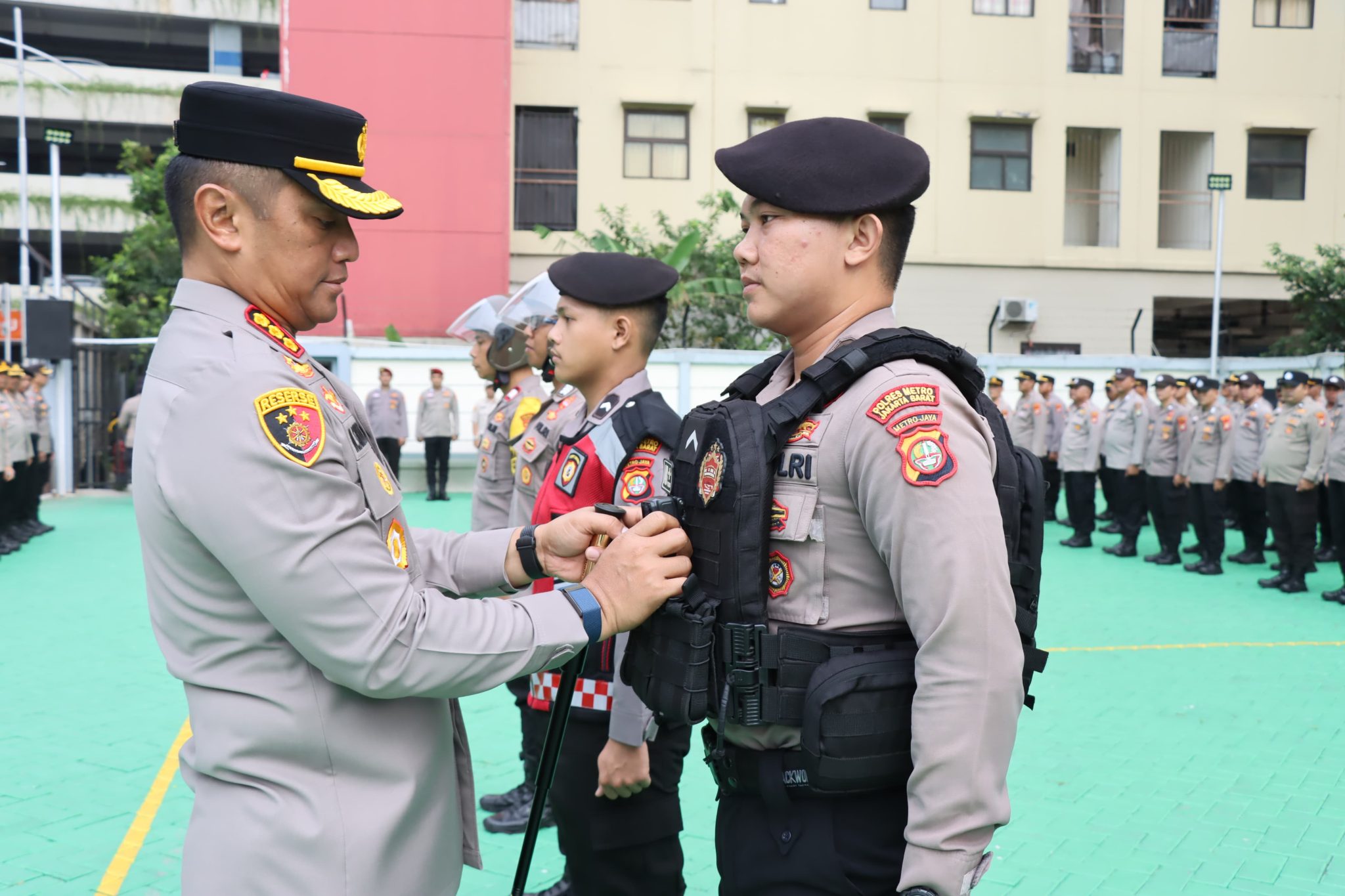 Jakarta Barat, Dalam upaya meningkatkan keselamatan dan mendukung kelancaran tugas personel, Kapolres Metro Jakarta Barat, Kombes Pol M. Syahduddi, memberikan 500 helm, rompi, dan bodycam kepada para anggota Polres Metro Jakarta Barat, Selasa, 24/9/2024.