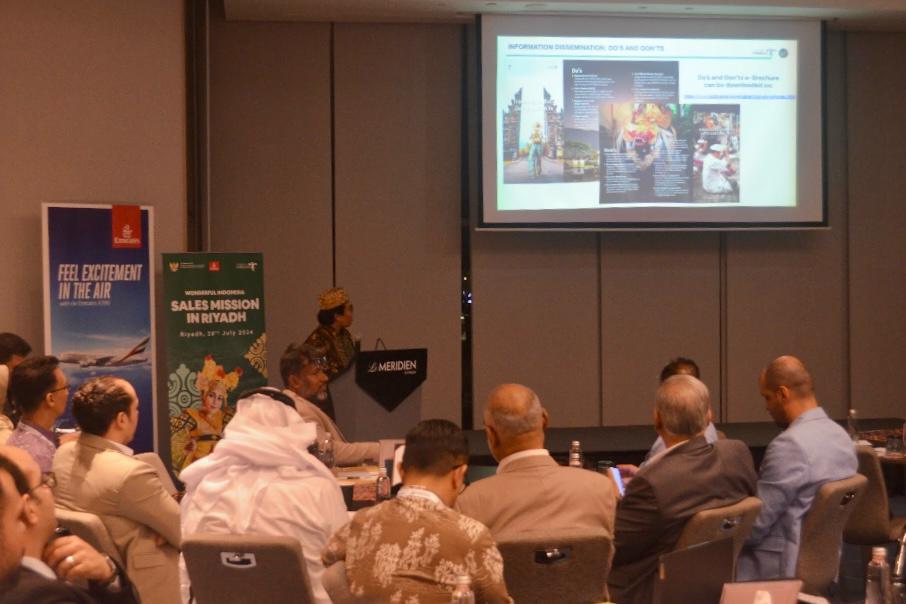 Jakarta, 29 Juli 2024 – Dalam rangka mempromosikan pariwisata Indonesia dan mendukung capaian target kunjungan wisatawan mancanegara, khususnya Arab Saudi, Kementerian Pariwisata dan Ekonomi Kreatif/Badan Pariwisata dan Ekonomi Kreatif (Kemenparekraf/Baparekraf) menyelenggarakan kegiatan sales mission (misi penjualan) di dua kota yakni di Riyadh dan Jeddah.