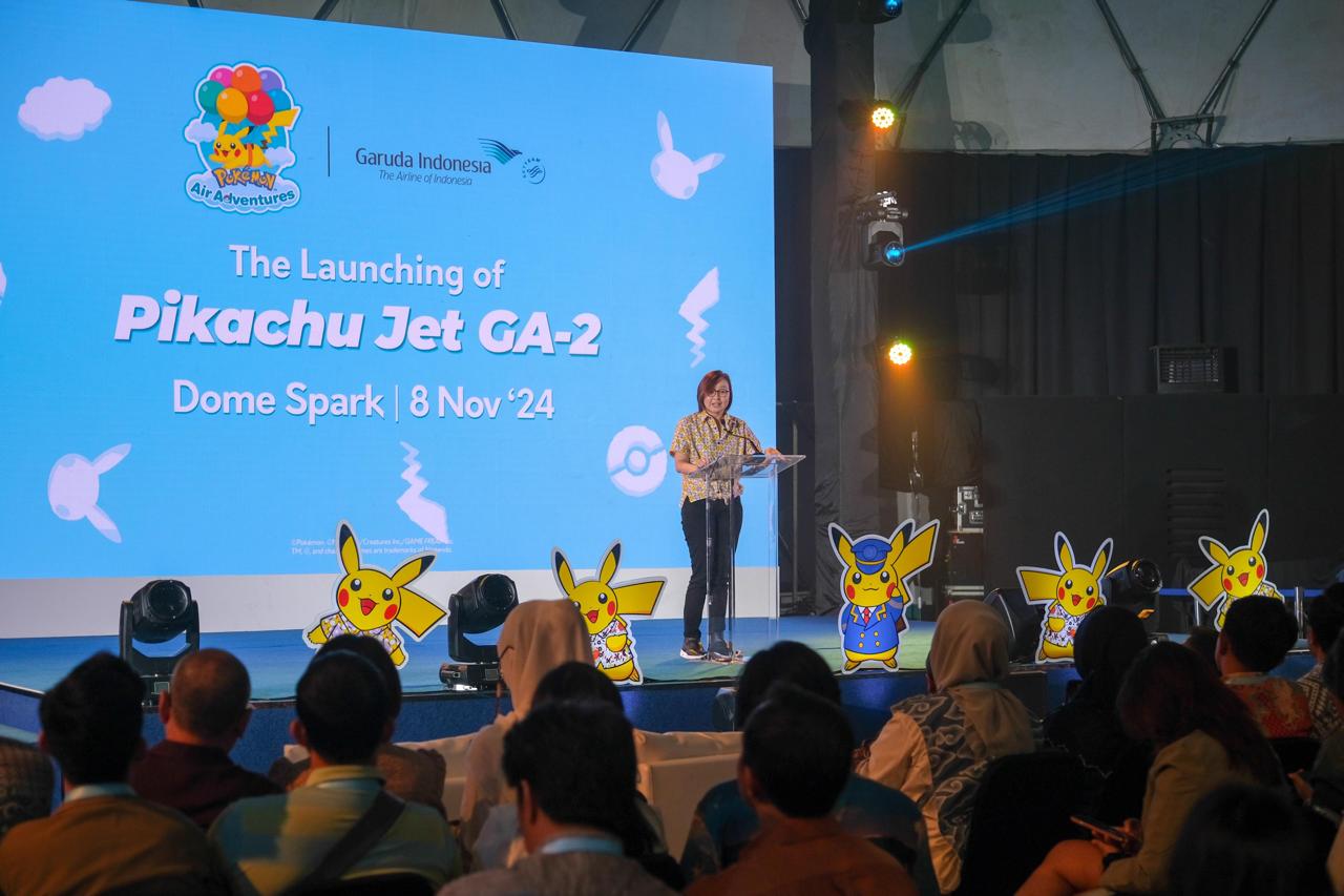 Jakarta, 9 November 2024 – Wakil Menteri Ekonomi Kreatif/Wakil Kepala Badan Ekonomi Kreatif (Wamenekraf/Wakabekraf) Irene Umar mengapresiasi kolaborasi PT Garuda Indonesia dan The Pokémon Company yang kembali menghadirkan desain thematic livery Pikachu Jet GA-2 yakni karakter Pikachu berkemeja batik yang diaplikasikan di dua sisi pesawat wide body Airbus A330-300 Garuda Indonesia.