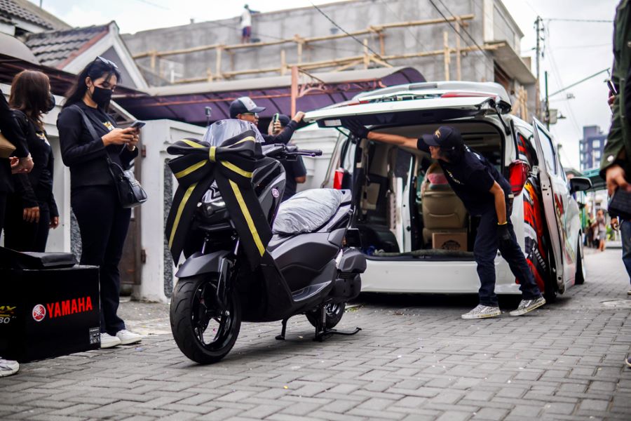 Matik premium NMAX “TURBO” dan NMAX NEO diletakkan di dalam mobil mewah tersebut lantas dikirim ke tempat tinggal konsumen pada 5 September 2024, masih dalam rangka Hari Pelanggan Nasional di bulan ini. Kali ini delivery unit NMAX “TURBO” dan NMAX NEO dilakukan dari dealer Sumber Baru Motor (SBM), Mangkubumi Yogyakarta menuju rumah konsumen. Uniknya, pengiriman skutik NMAX “TURBO” dan NMAX NEO dengan mobil mewah tersebut juga dikawal oleh 4 orang SPG Yamaha yang naik motor NMAX “TURBO”. Serta tentunya management Yamaha DDS 3 dan dealer SBM turut dalam delivery ini sampai ke tujuan rumah konsumen.
